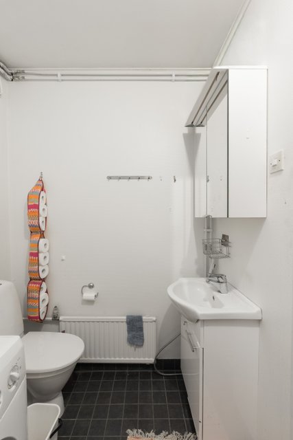 - Pesutilat remontoitu 2015. Pesutilojen yhteydessä wc (allaskaappi, peilikaappi, pesukoneliitäntä, seinät lasikuitutapetti, lattia laatta)