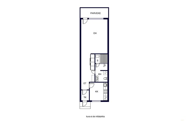 Hyvällä pohjaratkaisulla varustettu tilava rivitaloyksiö. Huoneiston pesutilat on remontoitu tyylikkäästi vuonna 2015. Keittiön ja eteisen lattiat on uusittu 2025. Olohuone tilava ja sieltä on kulku parvekkeelle. Keittiö on ajan henkeen erillisenä tilana erikseen olohuoneesta. Oma sauna. Asunto myydään vuokrattuna (vuokra 340 eur/kk + vesi 15 eur/hlö/kk).