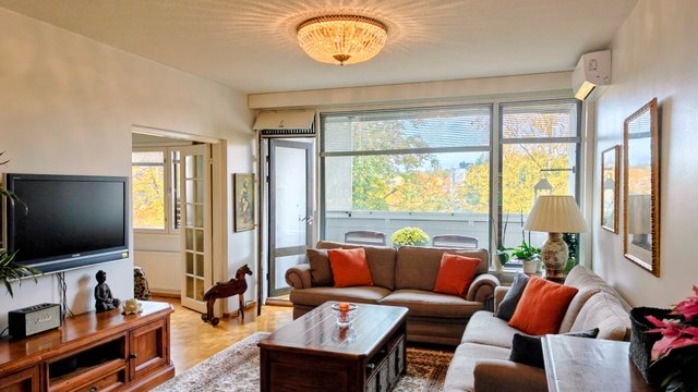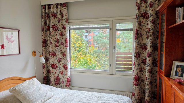 Valoisa neljännen kerroksen läpitalonhuoneisto.