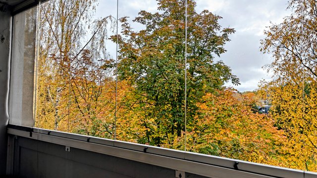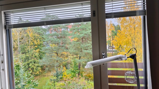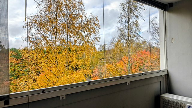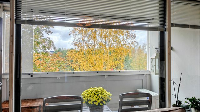 - Käynti omalle lasitetulle parvekkeelle. Ilmalämpöpumppu. Tammimosaiikkiparketti.