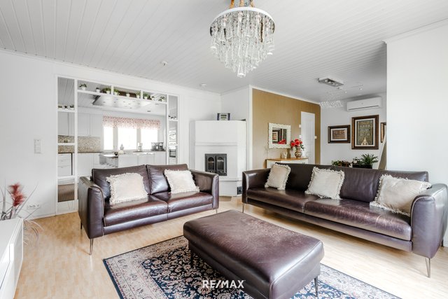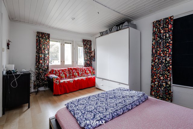 - Rakennusluvassa ja myyjien ilmoittama asuinpinta-ala kohteelle on 116m² + 7,5m². Talon yksi huoneista (alkuperäinen varasto) on muutettu makuutilaksi. Tilaan on lisätty myös ikkuna. Ei tarkistusmitattu. Pinta-ala voi siis olla edellä mainittua pienempi tai suurempi.