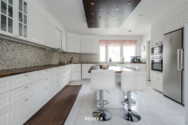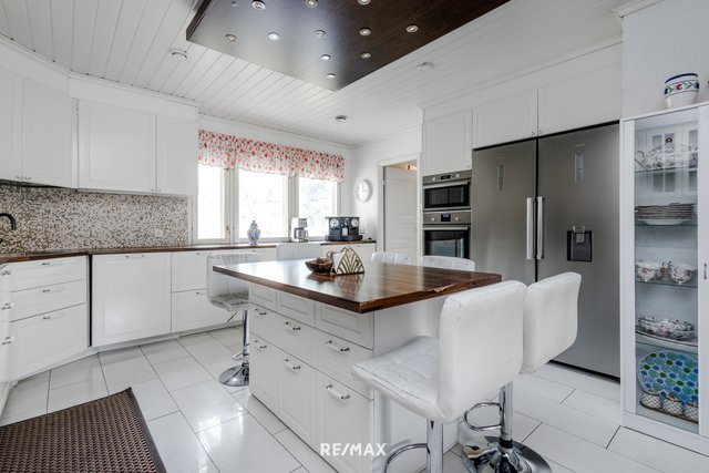 - Jääkaappi, erillinen pakastin, erillisuuni, liesi, astianpesukone, keittiösaareke, mikroaaltouuni, ja liesituuletin