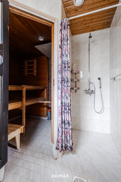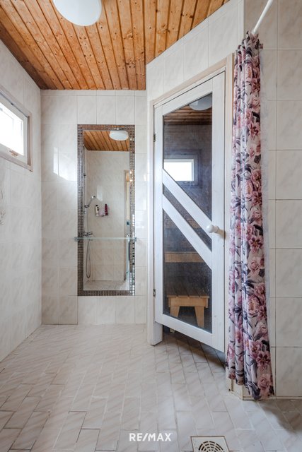 - Pesuhuone, jonka yhteydessä sauna. Pesuhuoneen varustuksiin kuuluu vain suihku. Kulku ulos kodinhoitohuoneen kautta. Lisäksi erillinen kylpyhuone sekä erilliswc.