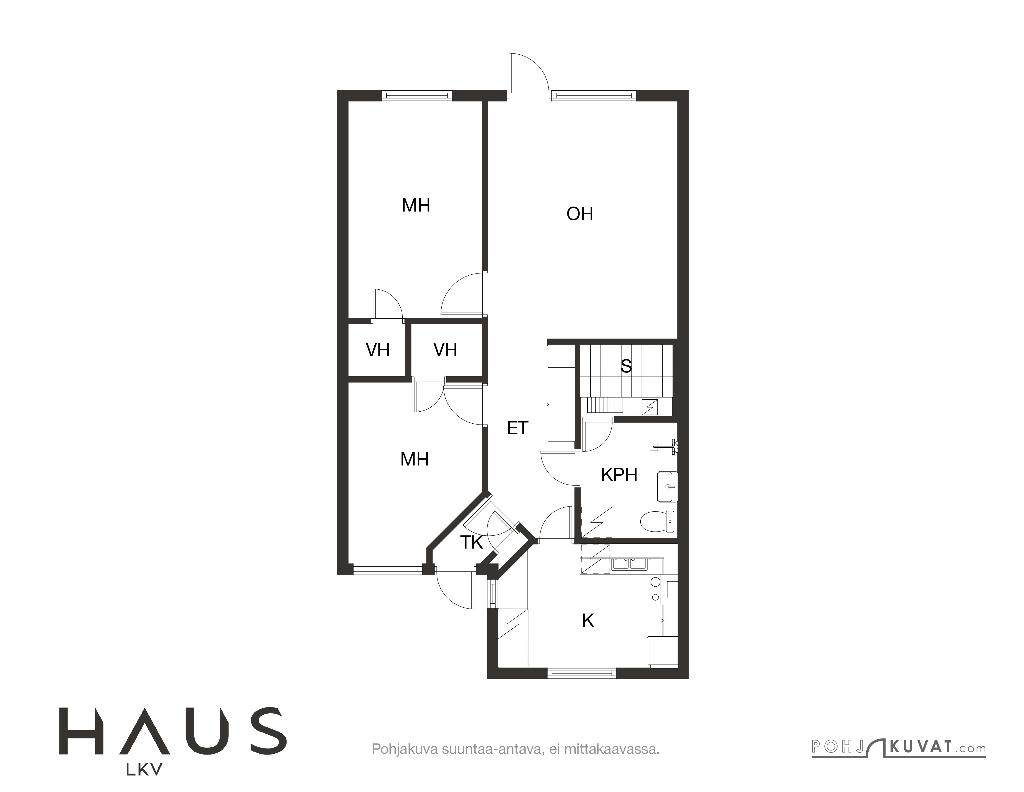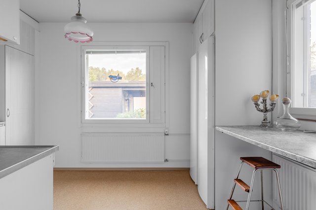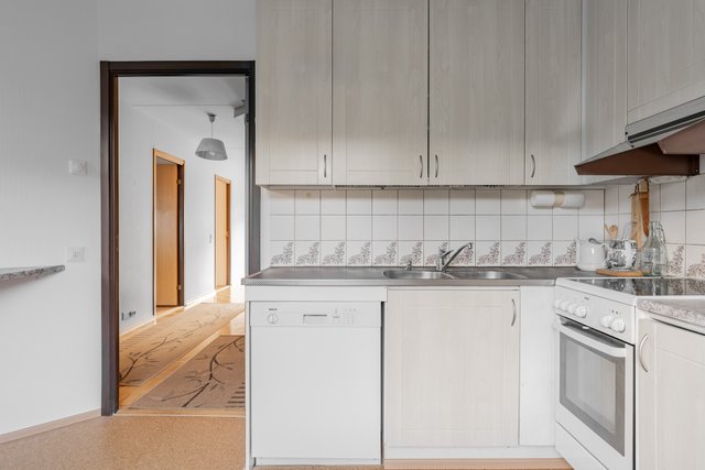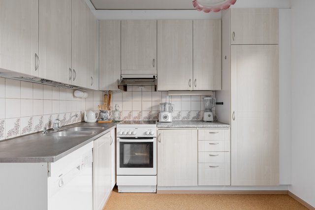 - Varustus: Jääkaappi, pakastinkaappi, astianpesukone, liesi (keraaminen), liesituuletin.