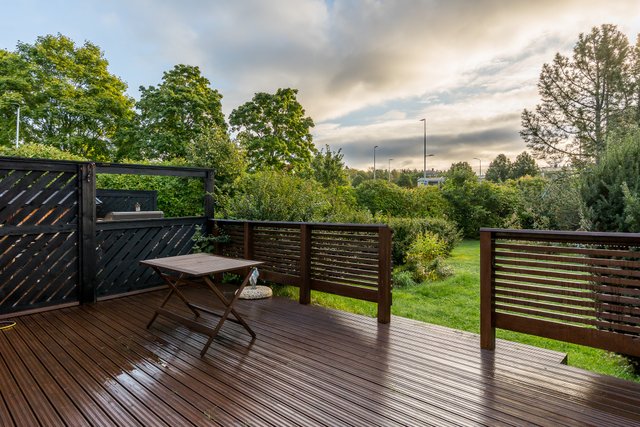 Huoneiston kylpyhuone on juuri valmistunut remontista ja muilta osin huoneisto on siistissä kunnossa. Olohuoneesta on käynti poikkeuksellisen suurelle ja vehreälle takapihalle, josta löytyy myös reilunkokoinen terassi, jolla nauttia aurinkoisista päivistä.