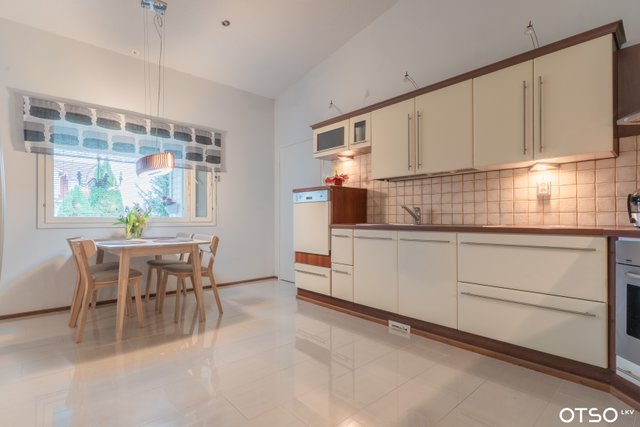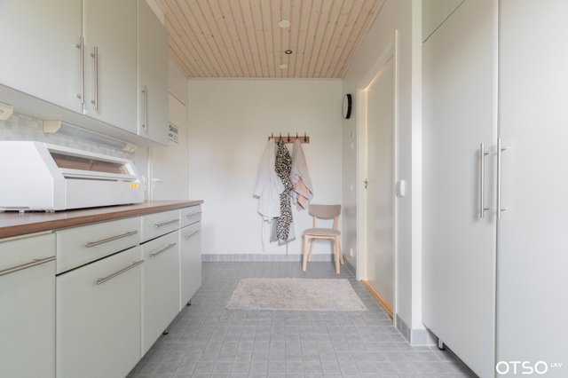 - Pesukoneliitäntä, lattialämmitys, pesuallas, lattiakaivo, pöytätaso, pyykkikaapit, keskuspölynimuri, ja tila pesutornille