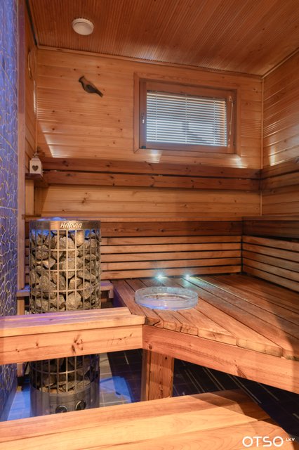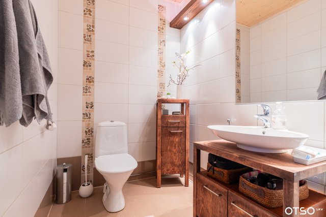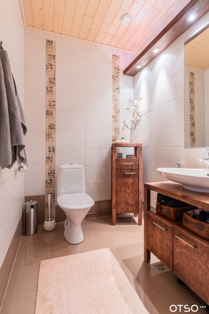 Pesutilat hurmaavat vaalealla, raikkaalla ilmeellään, ja sauna tarjoaa tyylikkään ja rauhoittavan paikan rentoutumiseen.