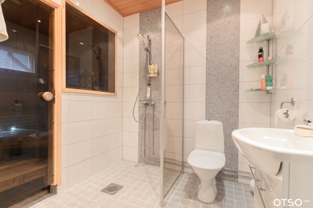 - WC-istuin, suihku, suihkuseinä, ja lattialämmitys
