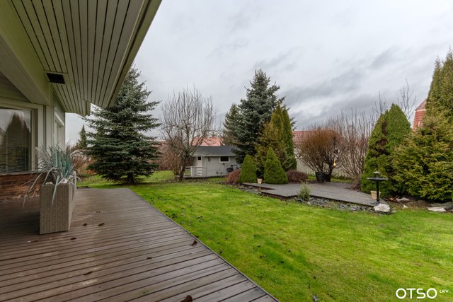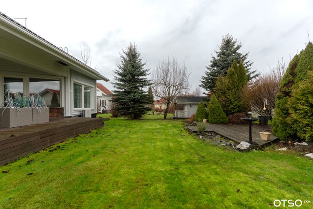 Viihtyisä takapiha kutsuu nauttimaan ulkoilmaelämästä – kaksi erillistä terassia mahdollistavat sekä oleskelun että ruokailun, ja valmiit istutukset tuovat vehreyttä ja helppoutta.