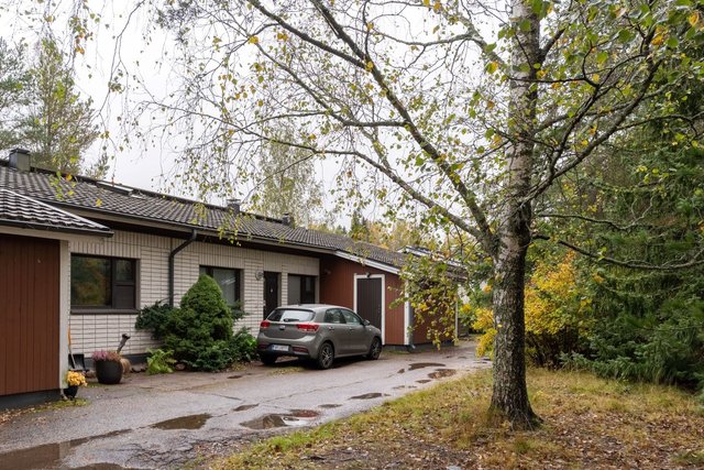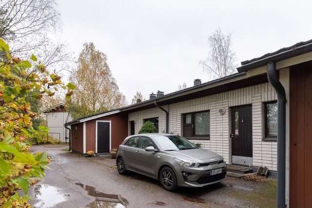 Sijainti on rauhallinen ja vehreä, lähellä metsää, mikä tekee tästä kodista ihanteellisen luonnonläheisyyttä arvostavalle. Liikenneyhteydet ovat erinomaiset: lähimmälle juna-asemalle on noin 2 kilometriä ja bussit kulkevat kätevästi läheltä. Alueella on hyvät palvelut, kuten päiväkodit, koulut ja ostoskeskukset, jotka sijaitsevat lähietäisyydellä. Auton voi säilyttää oman asunnon sisäänkäynnin vieressä.
