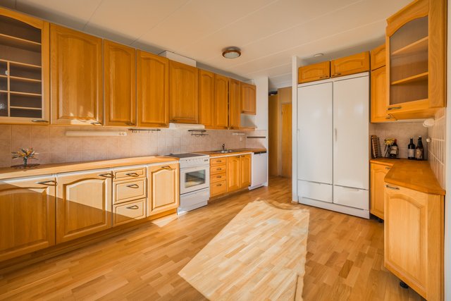 - poistettu keittiöstä viileä ruokakomero ja tehty keittiöremontti, uusittu kylmälaitteet ja liesi