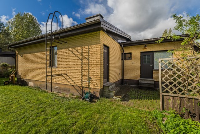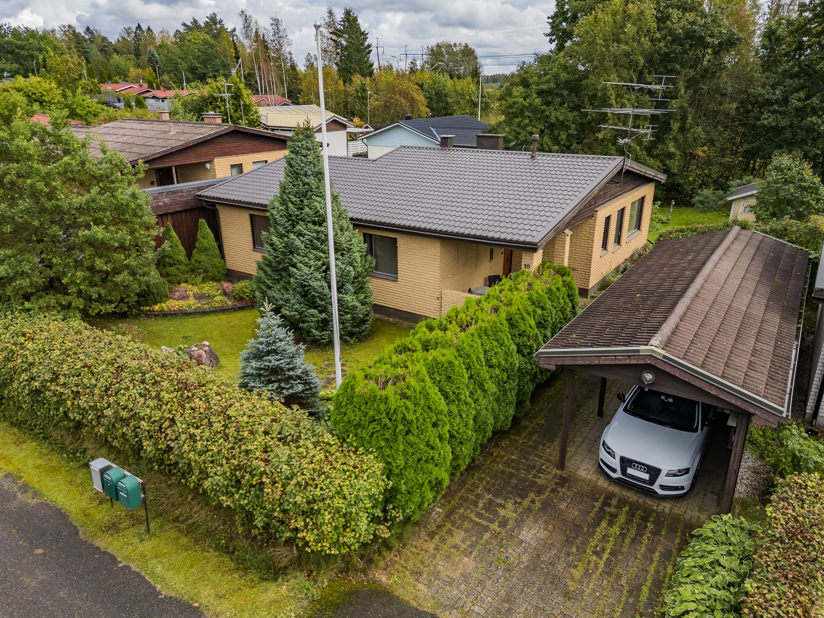Virkkalan Kirkonkylän kupeessa, pienen pihan suojassa, on hyvin pidetty 1-tasoinen koti, mikä on juuri kuntotarkastettu. Talo on tehty betonista ja Siporex-harkoista ja on Jämerä ihan mallinsakin puolesta. Ja on se päässyt rakennusvaiheessa lehteenkin ihmeteltäväksi - oli se sen verran hienoa meininkiä silloin.