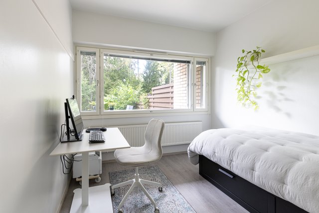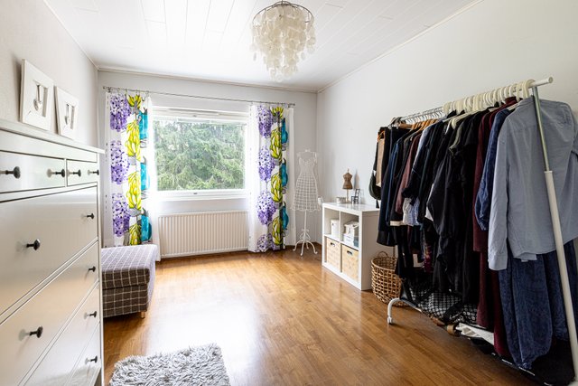 - Yläkerran makuuhuoneessa parketti ja maalatut seinät, alakerran makuuhuoneissa laminaatti lattiat ja maalatut seinät.
