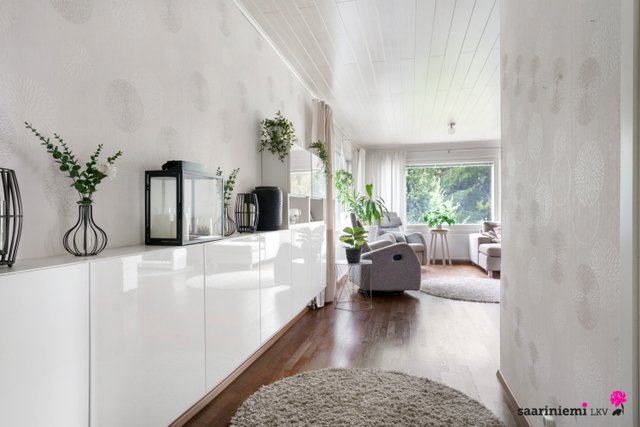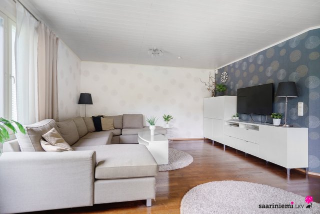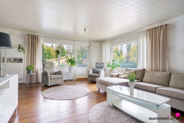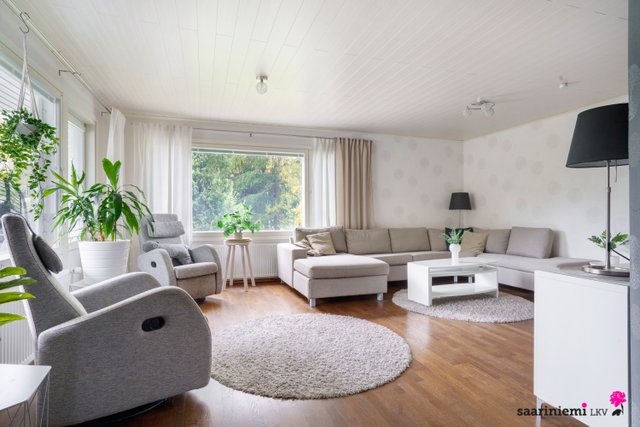 Asunnossa on keittiön ja olohuoneen lisäksi neljä huonetta, sauna kylpyhuoneineen sekä toinen erillinen wc. Isot ikkunat olohuoneessa tuovat reilusti valoa ja tilavassa keittiössä on laadukkaat Puustellin kalusteet. Olohuoneesta ja kylpyhuoneesta on kulku kodin kahdelle suurelle terassille, joilla viihtyy kauniina kesäpäivinä. Saunassa on lempeät löylyt tarjoava puukiuas.