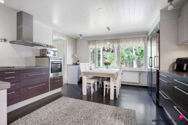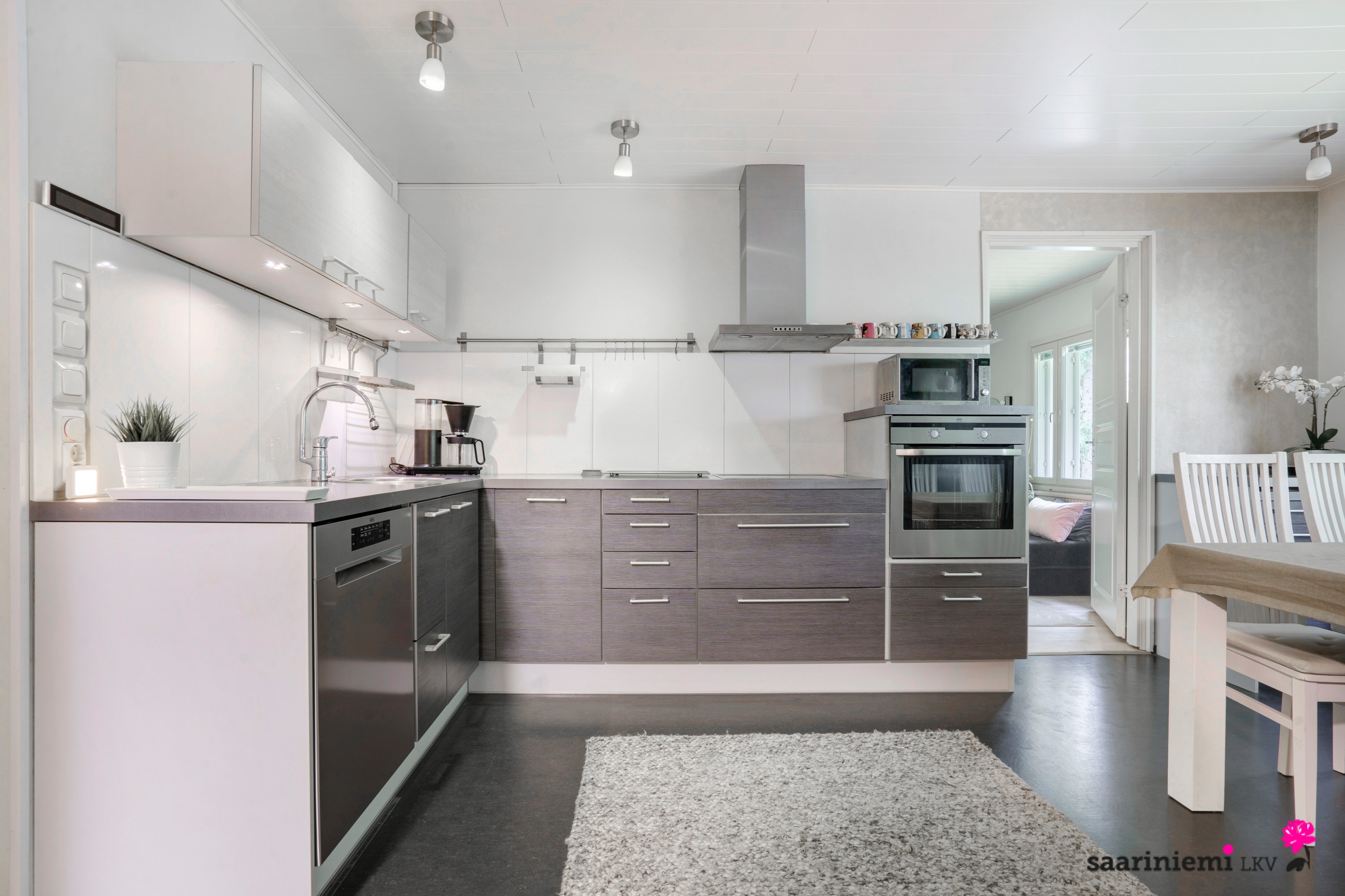 - Jääkaappi (uusittu v. 2024), erillinen pakastin (uusittu v. 2024), erillisuuni, liesi, liesituuletin, ja astianpesukone (uusittu v. 2025)