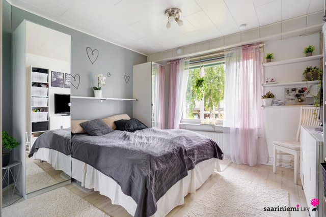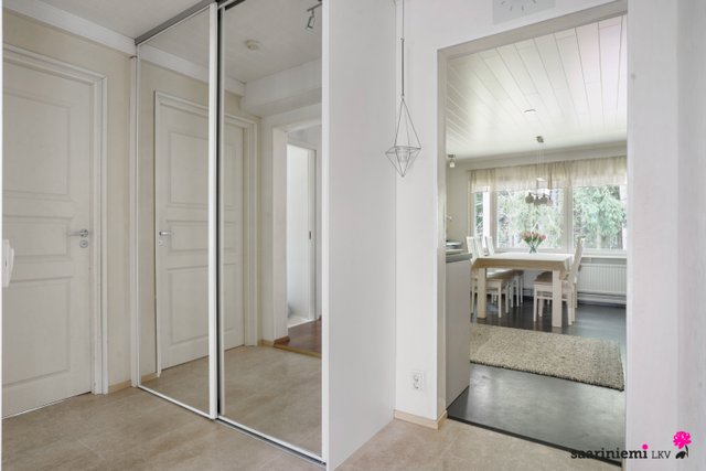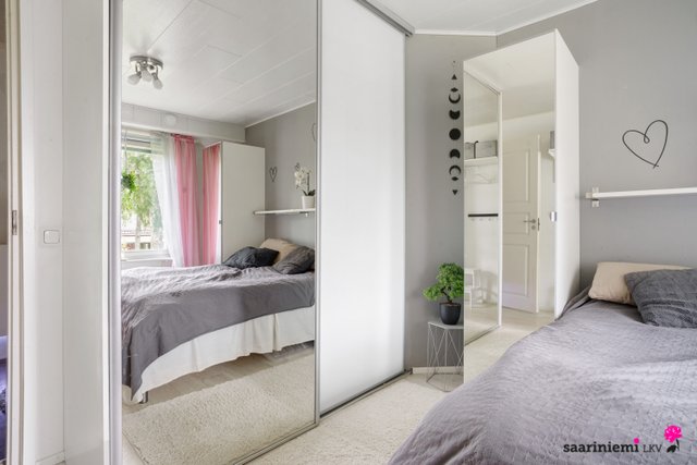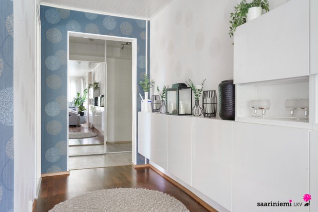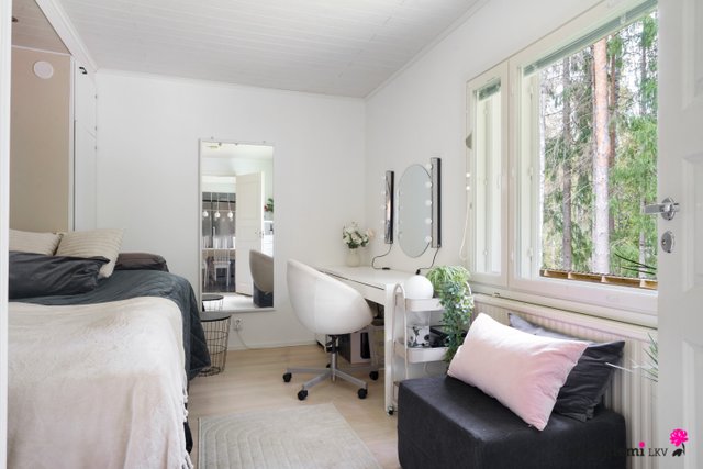 - Huoneen lattia on laminaattia ja seinät on maalattu. Eteisen lattia on laminaattia ja seinät on maalattu. Eteisessä on peililiukuovikaapit.