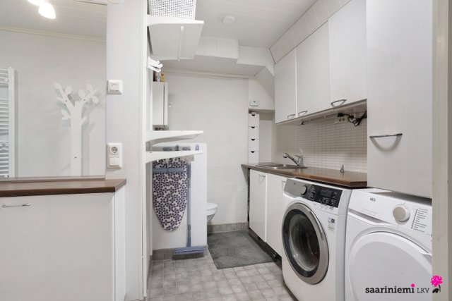 - V. 2007 sauna, pesuhuone ja kodinhoitohuone (myös sähköinen lattialämmitys).