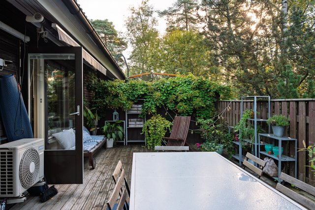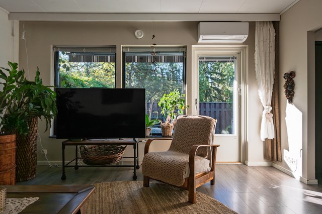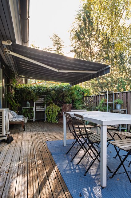 - Ilmalämpöpumppu ja kaukosäädöllä toimiva markiisi