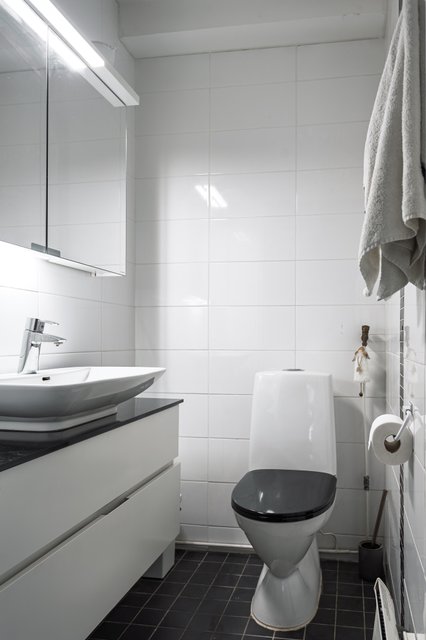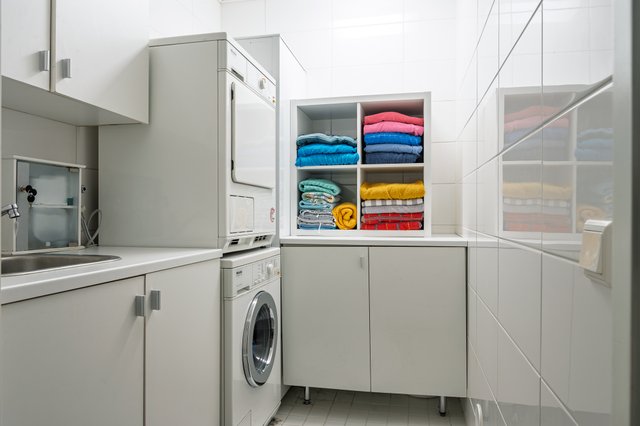 - Pesukoneliitäntä, pesuallas, pöytätaso, ja tila pesutornille