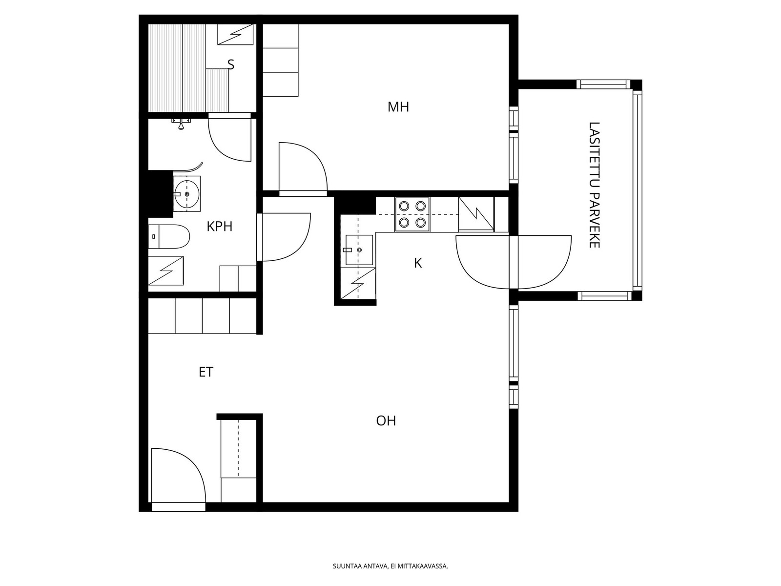 Lasitettu parveke etelään vehreisiin maisemiin.