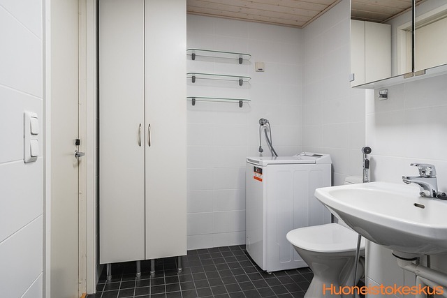 - Pesukoneliitäntä, wc-istuin, peilikaappi, suihku, suihkuseinä, ja kiinteät valaisimet
