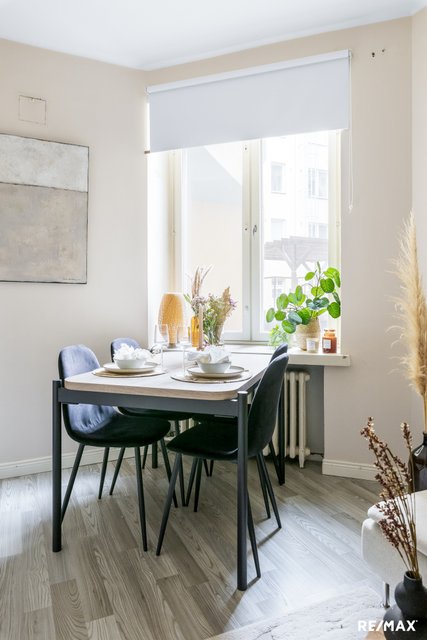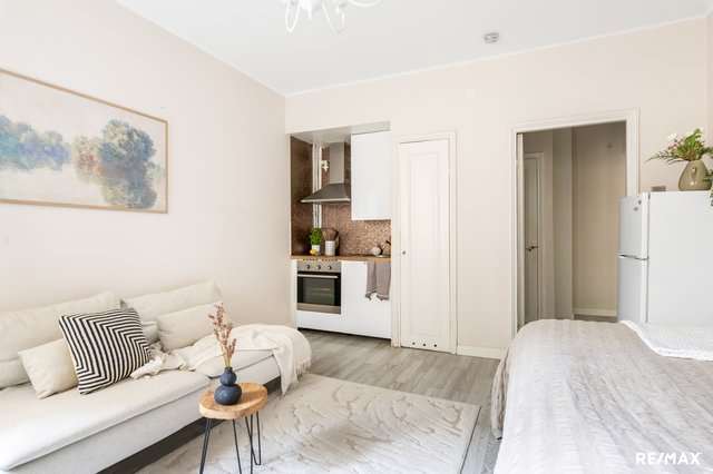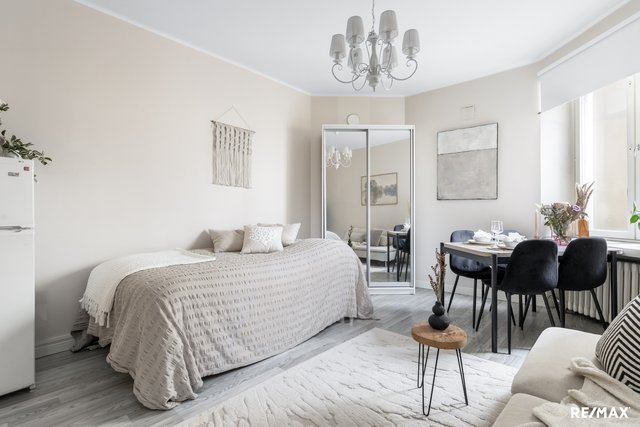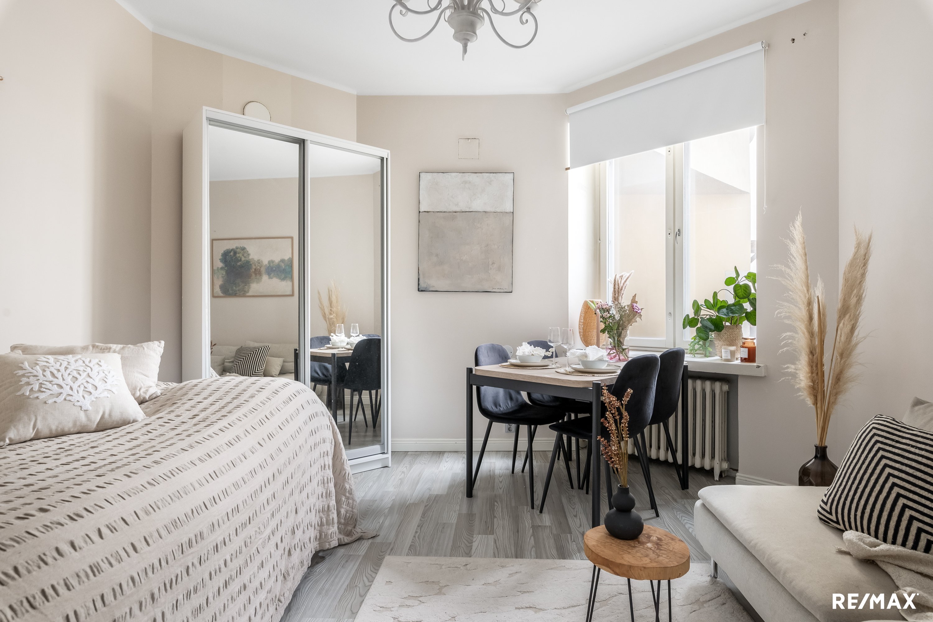 Tämä kauniin harmoninen yksiö hurmaa heti sisään astuessa. Asunnon pehmeät värisävyt ja lämmin tunnelma luovat raamit tälle Punavuoren sydämessä sijaitsevalle kaupunkikodille.