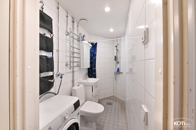 - WC-istuin, suihku, pesukoneliitäntä, ja pesuallas