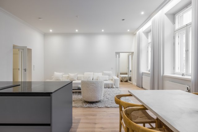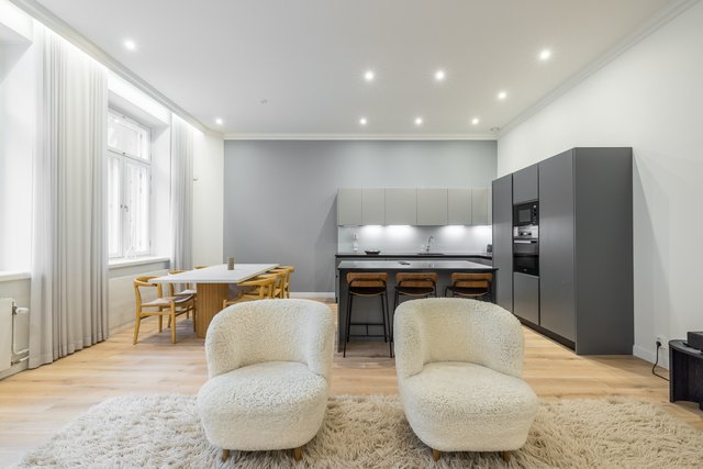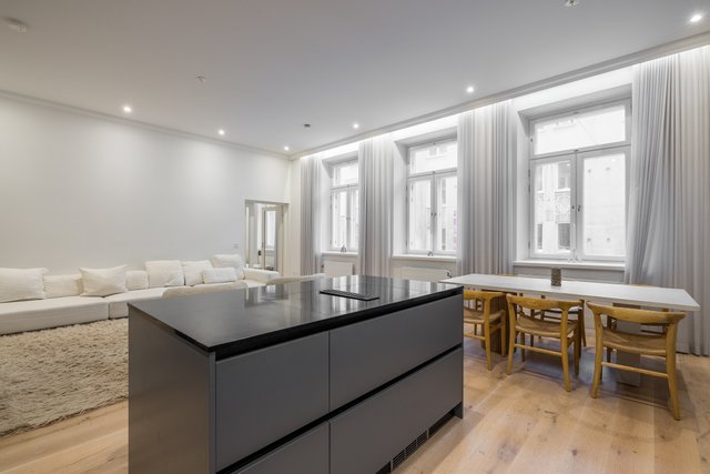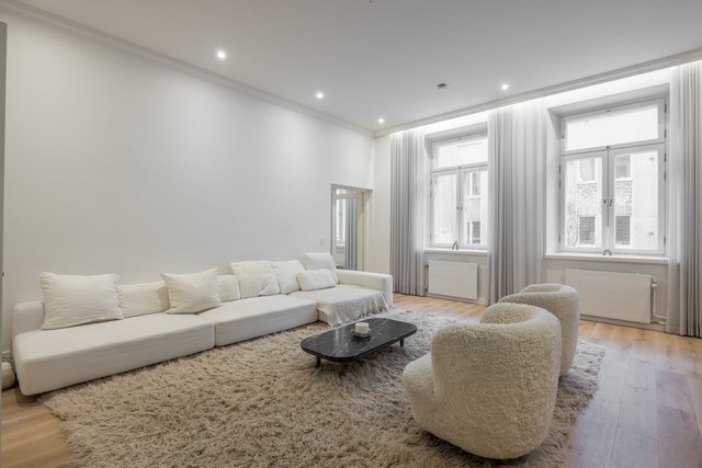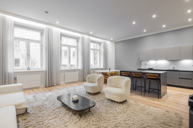 Tervetuloa tutustumaan tähän kauniiseen ja erittäin laadukkaasti saneerattuun arvokotiin huippusijainnilla aivan ydinkeskustan kupeessa. Arvotalon historiallinen tunnelma hurmaa jo rappukäytävään astuessa. Asunnon hulppea huonekorkeus, yhtenäiset parkettilattiat, leveät ikkunalaudat ja tarkkaan harkitut yksityiskohdat tekevät tästä kodista poikkeuksellisen upean. Olohuoneen, keittiön ja ruokailutilan muodostama avara kokonaisuus luo asuntoon arvokkaan tunnelman. Hyvin varustellussa keittiössä laadukkaat Alta Cucinan keittiökaapistot ja integroidut Mielen kodinkoneet tekevät kokkaamisesta juhlan. Kodissa on tällä hetkellä kaksi makuuhuonetta, joista tilava päämakuuhuone on rauhallisen sisäpihan suuntaan. Joustavan pohjan ansiosta kotiin on mahdollisuus pienillä muutostöillä rakentaa myös kolmas makuuhuone. Tilava kylpyhuone, erillinen wc, vaatehuone ja runsaasti säilytystilaa tekevät tämän kodin arjesta helppoa ja sujuvaa. Hyvin hoidettu taloyhtiö tarjoaa huoletonta asumista kattavan korjaushistorian ansiosta.