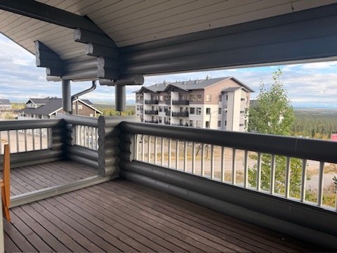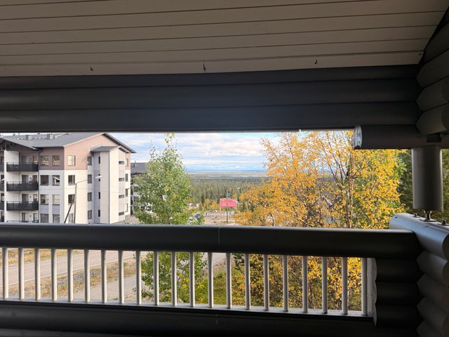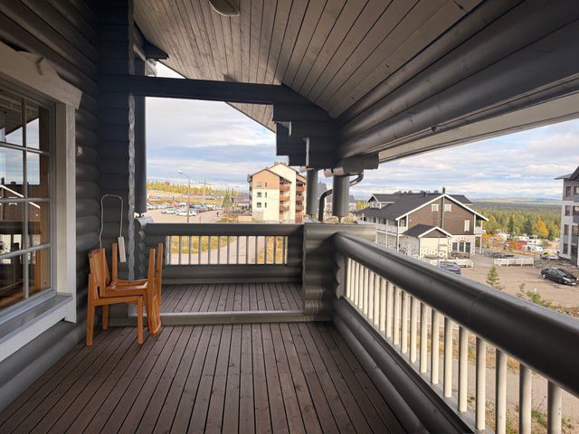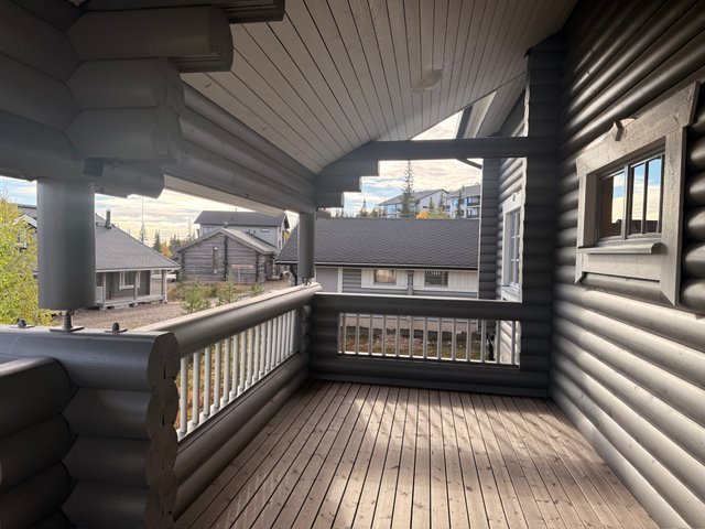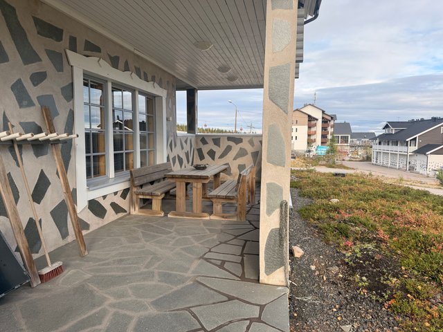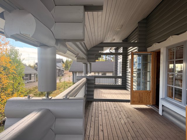 Huvilaa kiertää miltein koko talon ympäri terassi, joten pääset nauttimaan aamukahvit aamuauringossa ja illalla kaakaot upeassa kylän / tunturin valaistuksessa.