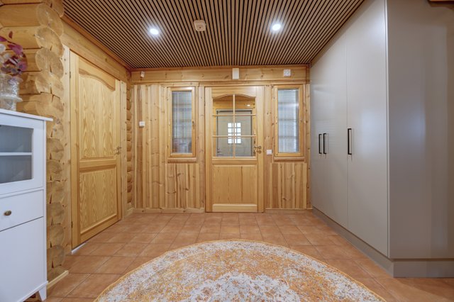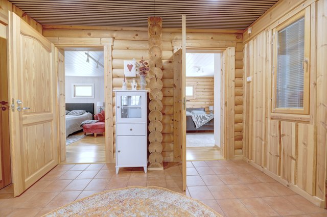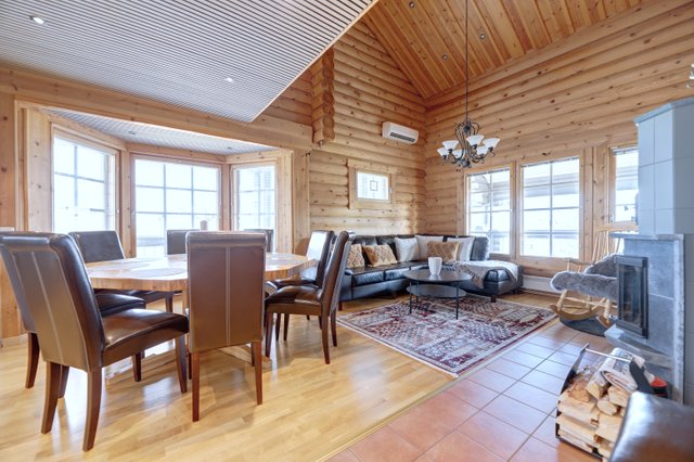 Rakennukset pyöreää hirttä, joka sopii näihin maisemiin upeasti. Tämä kohde ei ole koskaan ollut vuokrauskäytössä ja pinnat ovat erittäin hyvässä kunnossa. Keittiö on juuri uusittu kokonaisuudessaan sekä huvilan muita pintoja myös uudistettu.