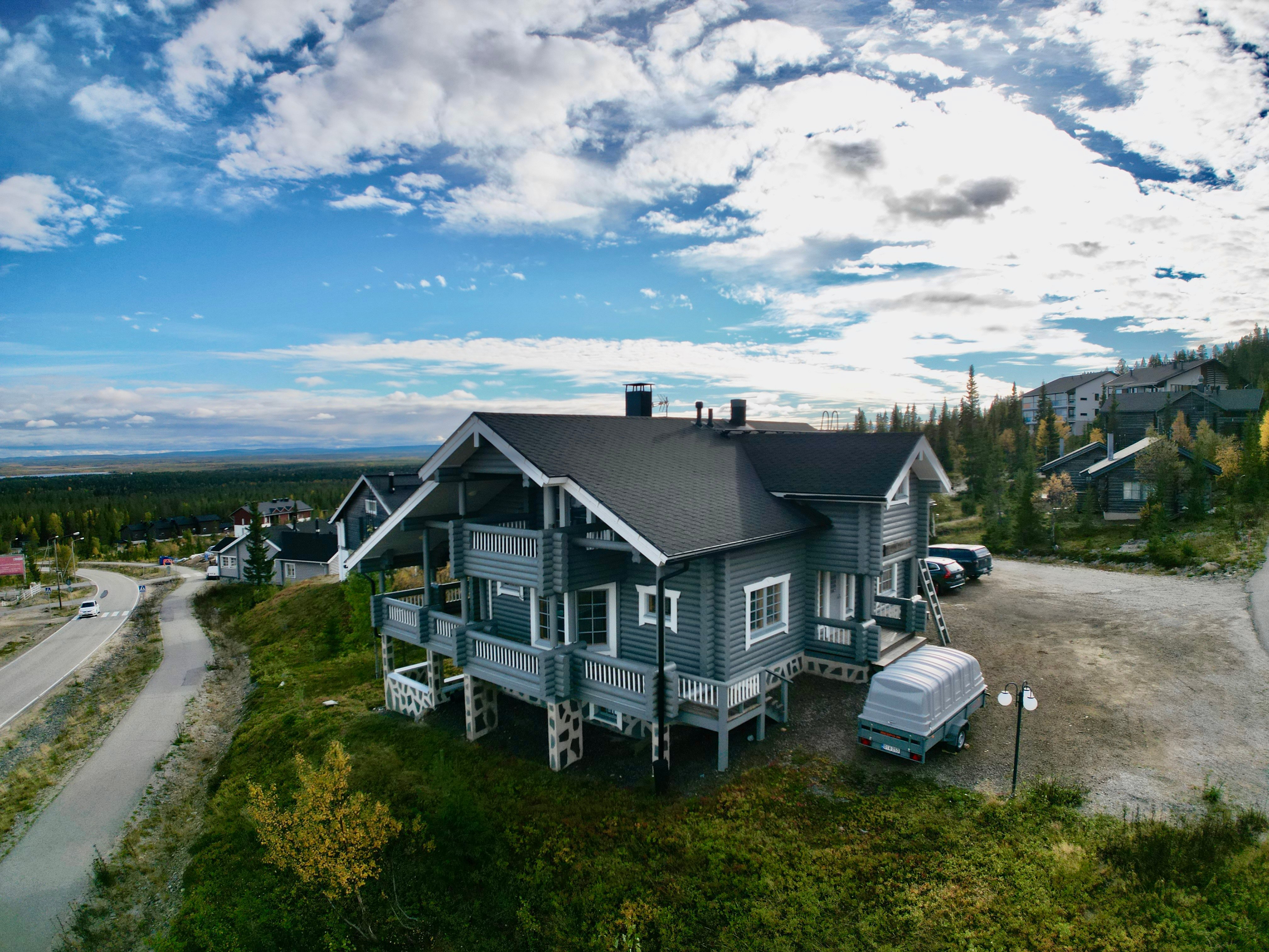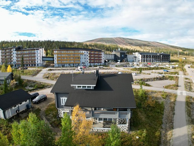 Yllästunturin juurelta, kaikkien palveluiden välittömästä läheisyydestä iso huvila nyt myytävänä! Tämän lähemmäksi palveluita et voi päästä, Hotelli Ylläs Saaga, ravintolat, Gondolihissi yms. ovat kaikki näköetäisyydellä.
