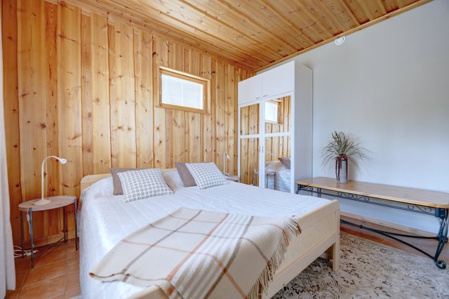 The buildings have round logs that fit beautifully into the landscape. This property has never been used for rental purposes and the surfaces are in very good condition. The kitchen has just been completely renovated, as have other surfaces in the villa.
