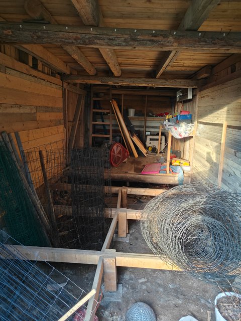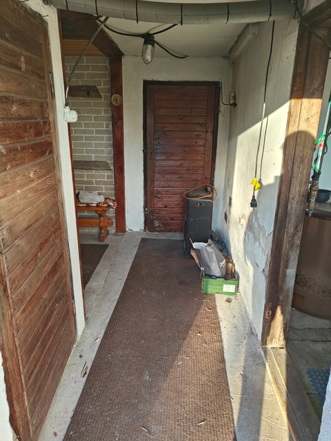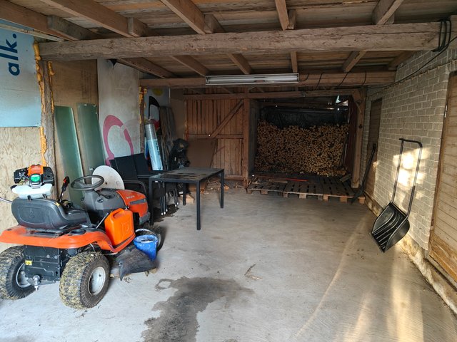 - Kiinteistöllä sijaitsee vanha navetta/talousrakennus n. 270 m², jossa sauna ja oleskelutilaa. Runsaasti harrastus-/säilytystilaa (autonosturi jo valmiina!). Voimavirta ja kaupungin (kylmä) vesi. Talousrakennuksen päätyyn rakennettu iso katos (mahdollistaa isomman, esim. asuntoauton, ajoneuvon tai laitteen säilytyksen).