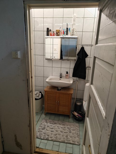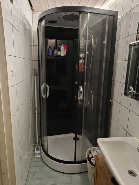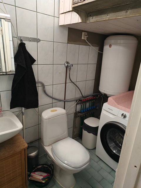 - WC-istuin, suihkukaappi, lattialämmitys, bidee-suihku, allaskaappi, peilikaappi, ja pesukoneliitäntä