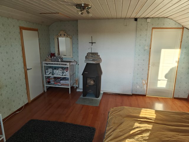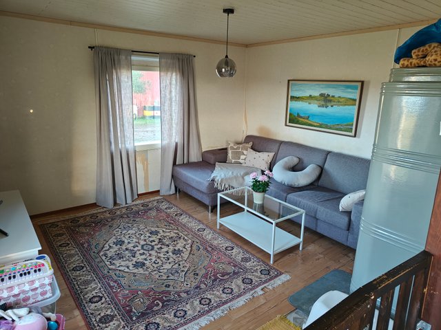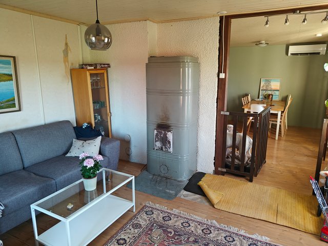 Asunnon tilat ovat käytännölliset, ja vaikka sisäseinät kaipaavatkin päivitystä, on talossa tehty merkittäviä remontteja, kuten katon uusiminen vuonna 2021 ja ilmalämpöpumpun asennus. Lämpöä ja tunnelmaa taloon tuo useampi tulisija, ja lämmityskustannukset pysyvät kurissa puulämmityksen ansiosta.