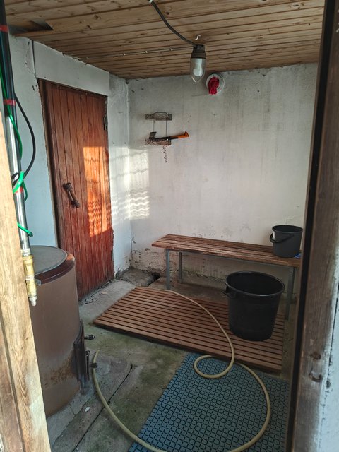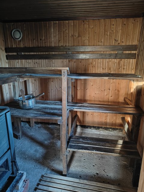 - Vanhan mallinen sauna, joka sijaitsee talousrakennuksessa. Puukiuas, veden lämmitin kyljessä sekä pesuhuoneen puolella vesipata.