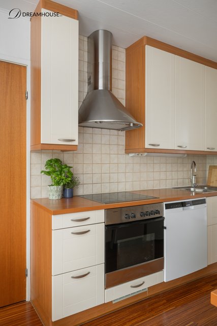 - Jääkaappi, uuni, liesituuletin, liesi, astianpesukone, ja erillinen pakastin