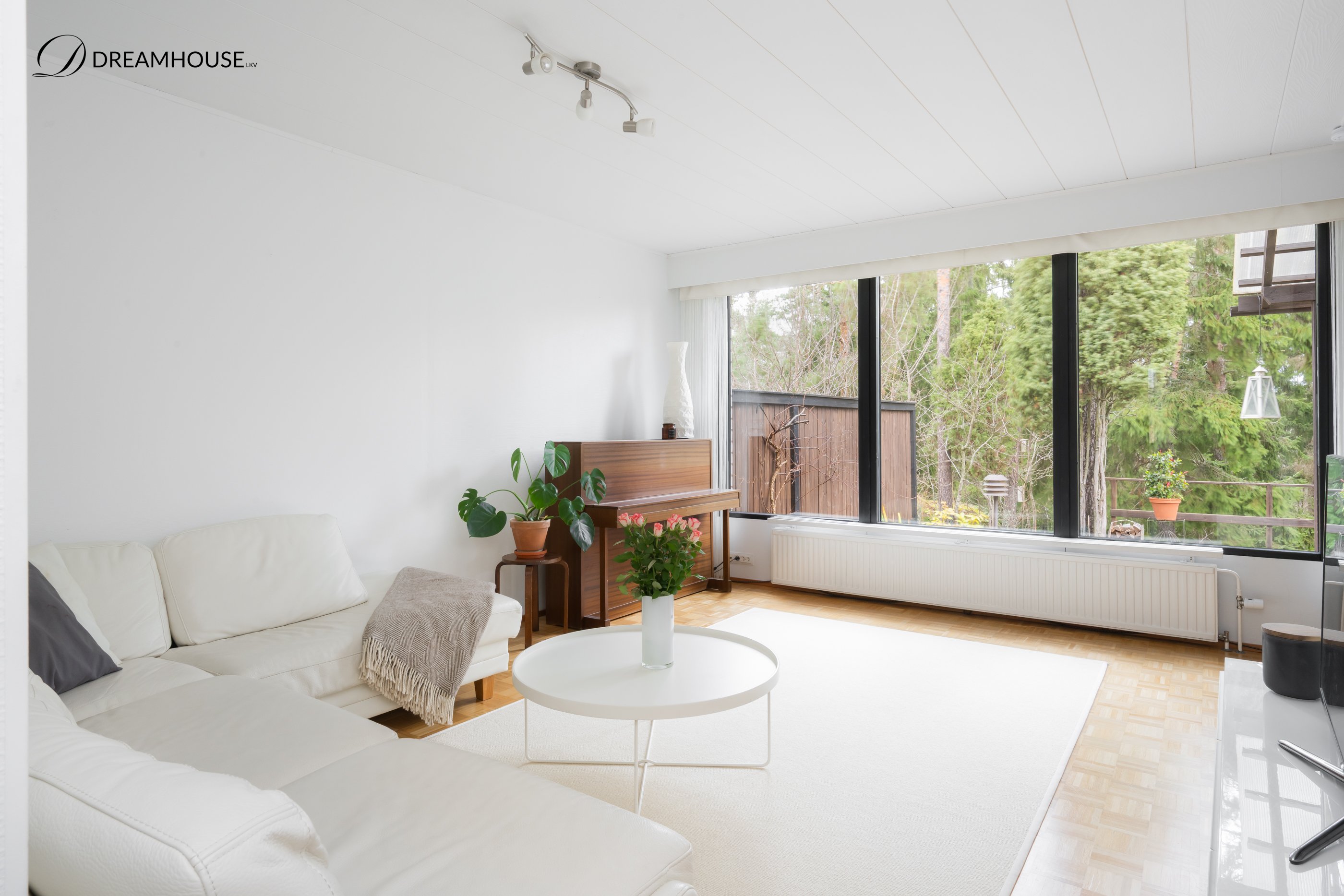 Tervetuloa luonnonläheiselle Isoistenkujalle! Tämä valoisa ja kaunis koti sijaitsee erinomaisella sijainnilla rauhallisen kadun varrella kauniin kallion suojassa Espoon Lystimäessä.