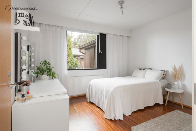 Kolme makuuhuonetta tarjoavat hyvin tilaa perheelle, etätyölle ja harrastuksille. Säilytystilaa löytyy kaapistoista ja vaatehuoneesta, joka on isoimman makuuhuoneen yhteydessä.