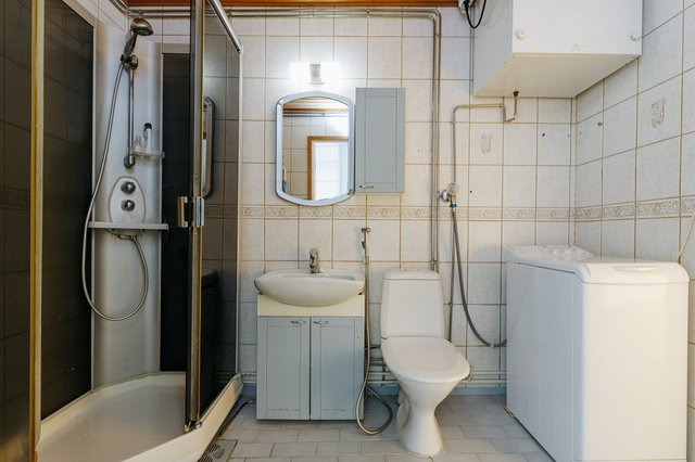 - WC-istuin, suihku, suihkukaappi, lattialämmitys, pesuallas, allaskaappi, peili, ja bidee-suihku