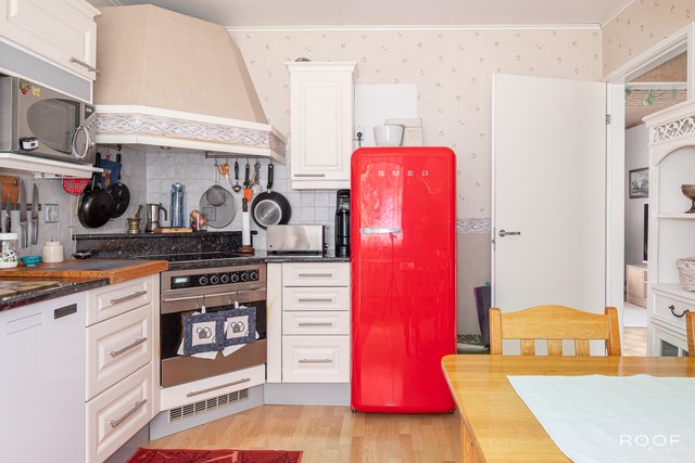 - Keittiössä oleva punainen SMEG jääkaappi