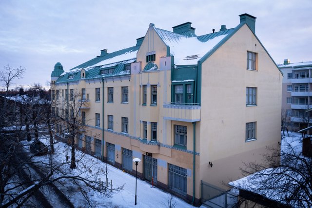 Kokkolan ydinkeskustan arvostetuimmalla paikalla, ainutlaatuisessa jugend-henkisessä Kokkolinnassa, sijaitsee tämä tyylikäs ja erinomaisessa kunnossa oleva 84 m²:n kolmio. Vuonna 1908 valmistunut rakennus edustaa kokkolalaista arkkitehtuuriperintöä parhaimmillaan – se on yksi kaupungin harvoista jugend-tyylisistä asuinrakennuksista. Aikanaan Kokkolinna oli kaupunkikuvassa edelläkävijä, ensimmäisiä taloja, joihin johdettiin vesijohtovesi, ja sen jykevät kiviseinät heijastavat edelleen perinteistä mestarirakentamista. Massiiviset rakenteet tekevät asunnosta myös hämmästyttävän hiljaisen, vaikka koti sijaitsee aivan keskustan sykkeessä.