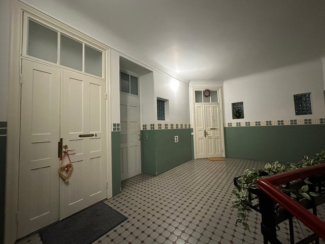 - Avara, tyylikäs aula, sekä pieni parveke olohuoneesta.