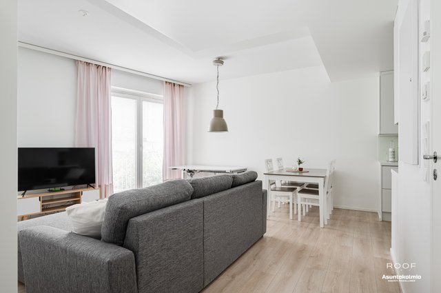 Asunto sijaitsee ensimmäisessä kerroksessa, ja asuntoon on järjestetty esteetön kulku. Pohjaratkaisu on toimiva ja säilytystilaakin on runsaasti kaapistojen ansiosta. Olohuone on helppo sisustaa ja erillinen keittiö on varustettu runsaalla laskutilalla ja laadukkailla kodinkoneilla. Asumismukavuutta lisää oma sauna sekä ranskalainen parveke. Asunnon oston yhteydessä on mahdollisuus ostaa autohallipaikka.