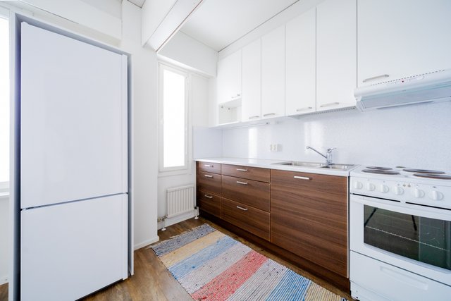 - Vuonna 2017 remontoitu avarammaksi purkamalla väliseinä. Laadukkaat kalusteet, laatikoissa ja yläkaapinovissa on hidastimet.