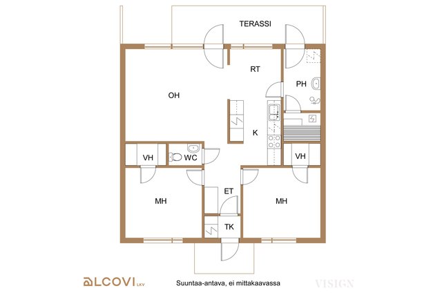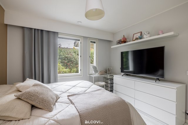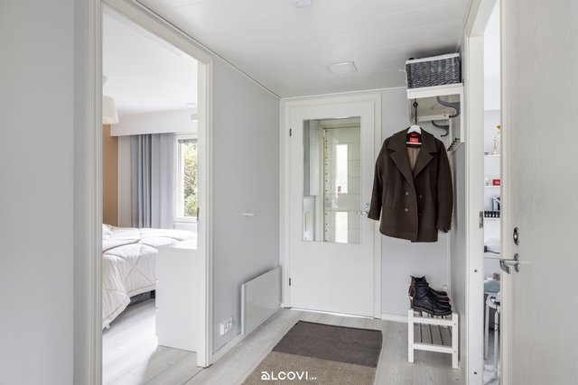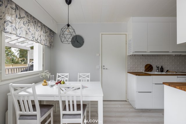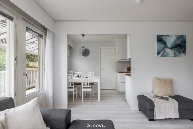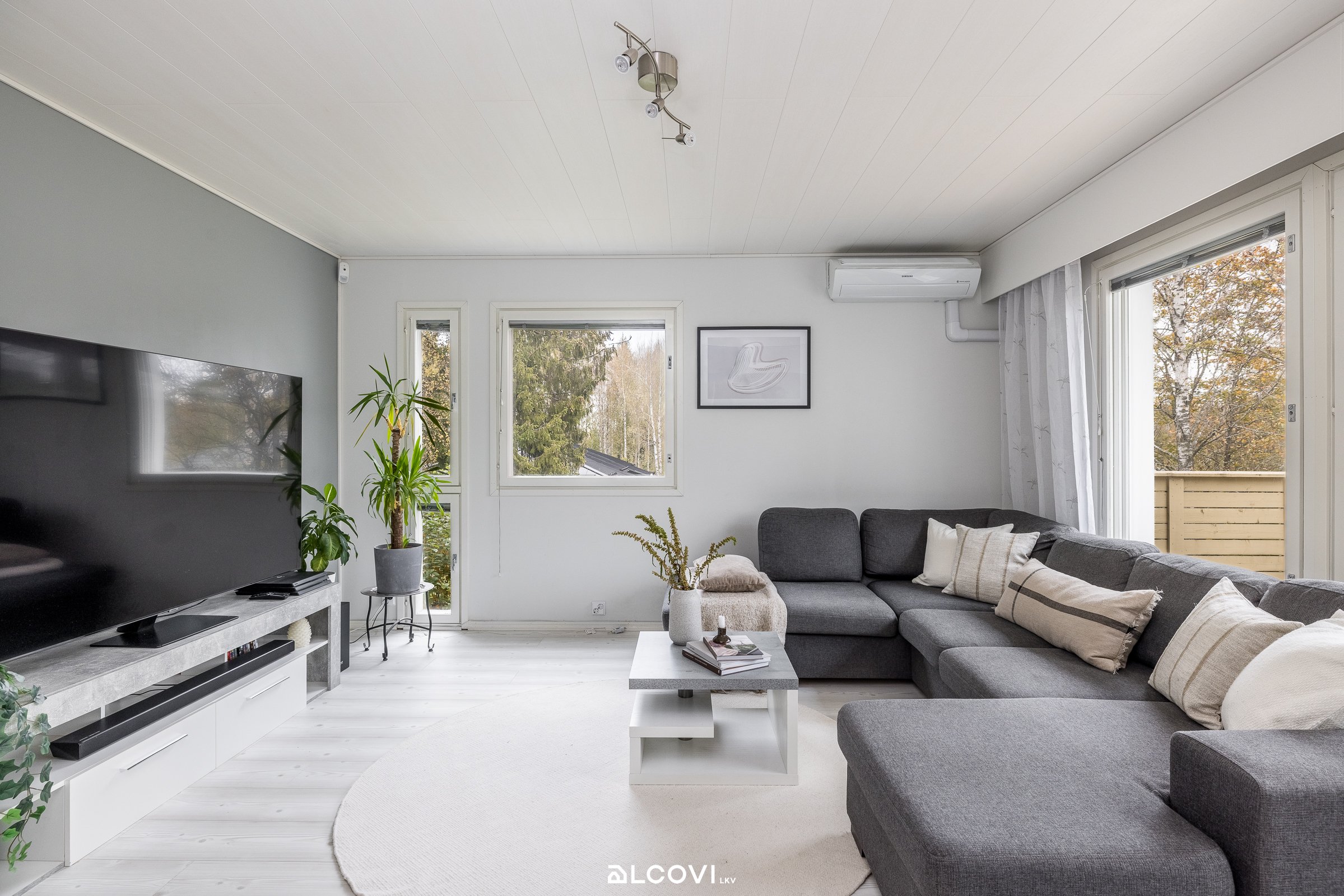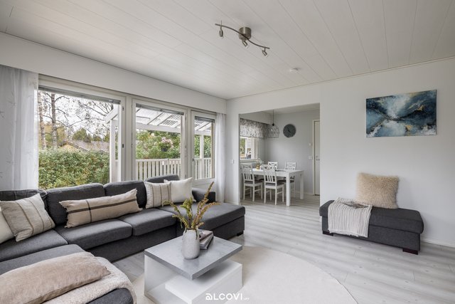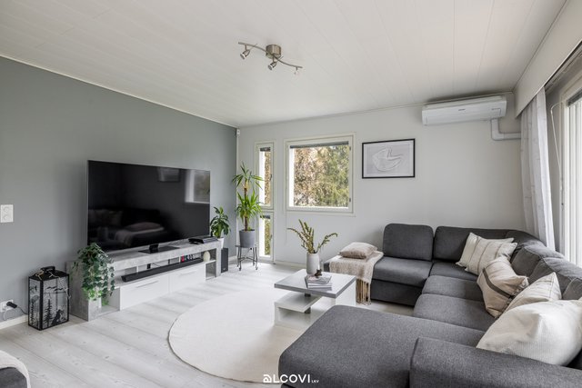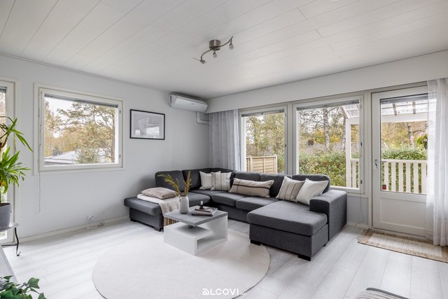 Avara olohuone yhdistyy toimivasti keittiöön siten, että kaikille arjen toiminnoille on luontainen paikkansa. Ajattomin sävyin toteutettu keittiö on remontoitu kattavasti muutama vuosi sitten laadukkain materiaalein ja tasokkain kodinkonein. Ruokailuun on mukavasti tilaa keittiön yhteydessä. Tilava terassi nurmipihoineen on mitä parhain lisä asumisviihtyvyyteen. Molempien makuuhuoneiden yhteydestä löytyy vaatehuoneet. Erillinen wc eteisen yhteydessä takaa arkielämän sujuvuuden. Nykyaikainen kylpyhuone on toimivan kokoinen ja käytännöllisesti toteutettu, joten sekä peseytymiselle, kaunistautumiselle että pyykkihuollolle on paikkansa, lisäksi lattialämmitys pitää laattapinnan mukavan lämpöisenä jalan alla. Oma sauna on piste iin päällä! Ilmalämpöpumppu viimeistelee asumisviihtyvyyden myös kesähelteillä.