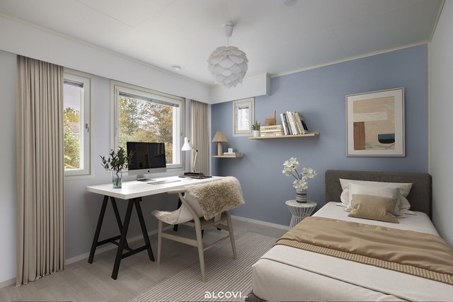 - Sälekaihtimet/rullaverhot, kiinteät valaisimet, ilmalämpöpumppu (viilennys + lämmitys) Lisäksi asunnossa on Sector alarm-hälytysjärjestelmä, uusi asukas voi halutessaan jatkaa sopimusta.