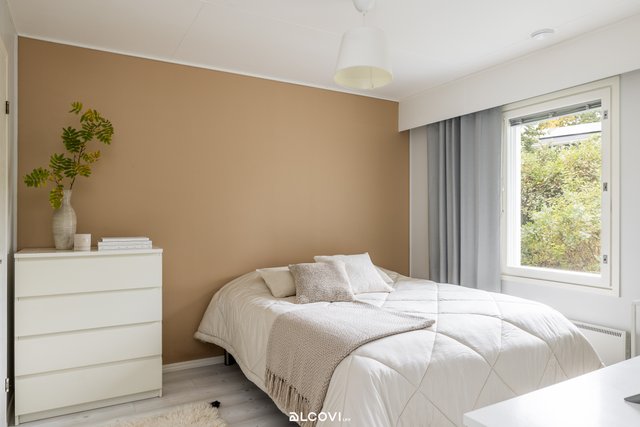 - Makuuhuoneita on 2 kpl. Lattiat on vinyyliä, seinät maalattu. Molempien makuuhuoneiden yhteydessä vaatehuoneet.