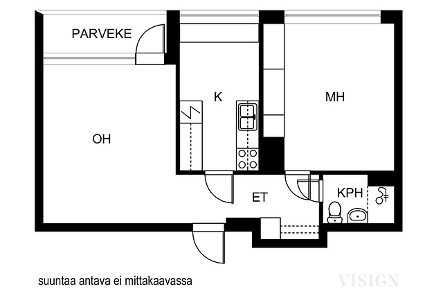 - Pinta-alaa ei ole tarkistusmitattu. Edellä mainittu pinta-ala saattaa tämän ikäisessä kohteessa poiketa olennaisestikin huoneiston nykyisten mittaustapojen ja standardien mukaan laskettavasta pinta-alasta. Huoneiston todellinen asuinpinta-ala voi siis olla esitteessä mainittua pienempi tai suurempi.