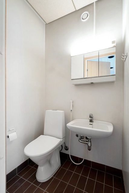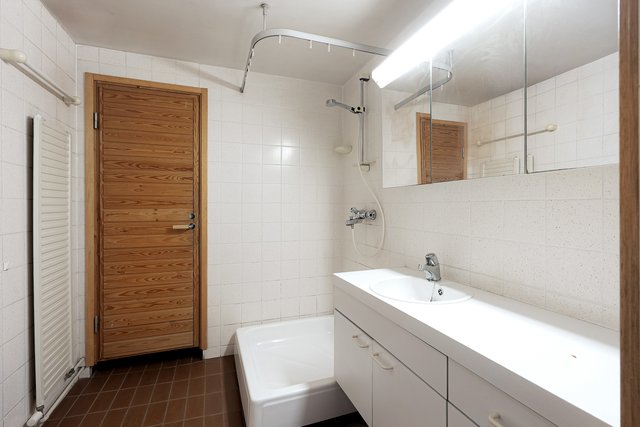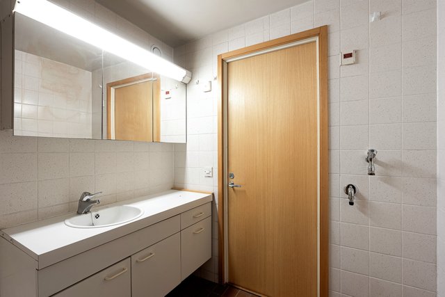 - Suihku, peilikaappi, pesukoneliitäntä, pesuallas, ja allaskaappi